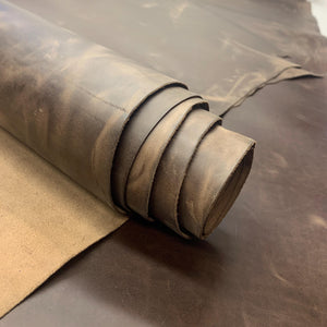 Brown leather pull up real 1.2mm 3oz thick crazy horse waxy oily finishing distressed
