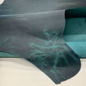 Turquoise leather pull up real 2mm 5 oz crazy horse waxy oily finishing distressed forest for bags shoes leathercraft journals